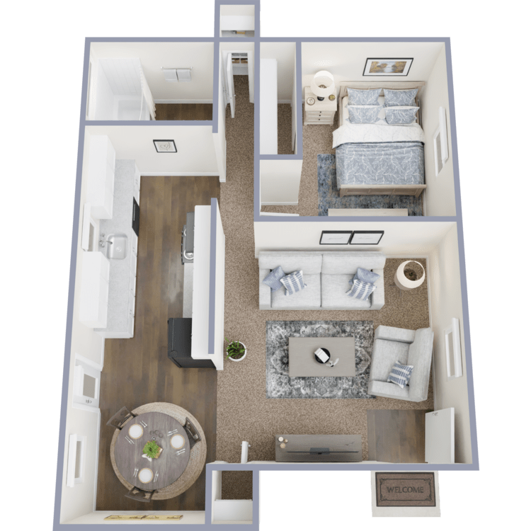 Our pet-friendly apartments for rent offer nine inviting studio, one, and two-bedroom floor plans handcrafted to fit your lifestyle perfectly. We designed these homes with the amenities you deserve. The modern vinyl flooring and plush carpets add a stylish touch that makes your space feel cozy. Spacious closets and layouts provide you with classic apartment living at its best.